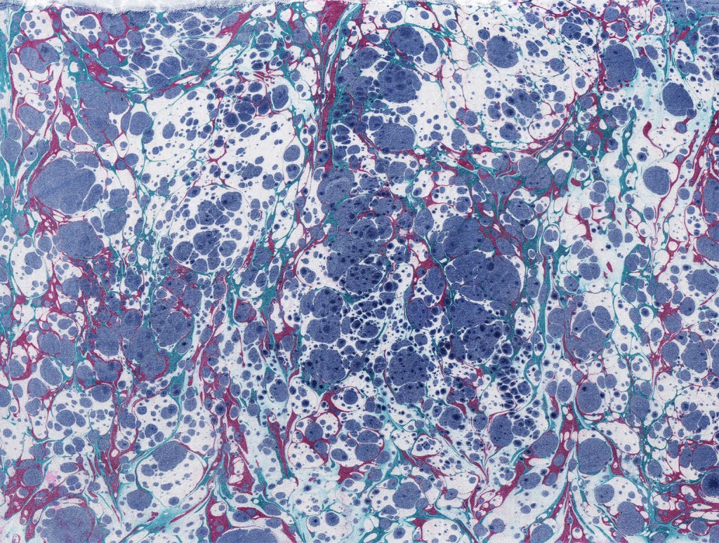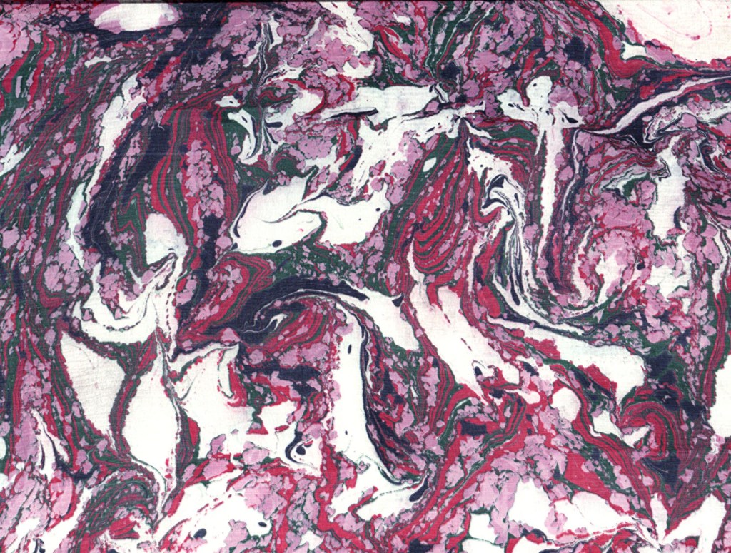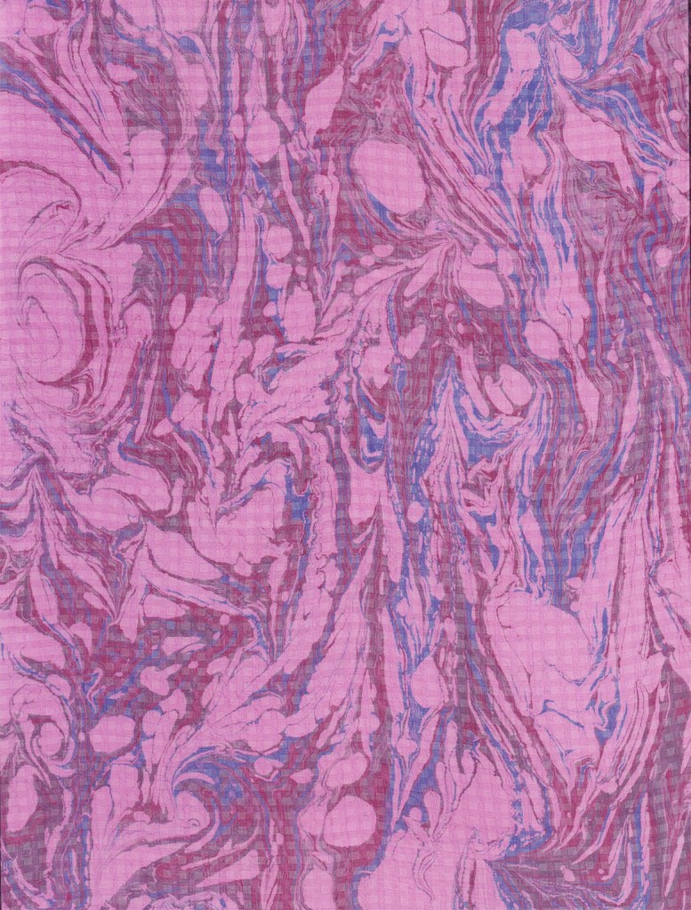 Série de marbrures réalisée sur des chutes de tissus en soie provenant des stocks inutilisés d’ateliers de confection de luxe