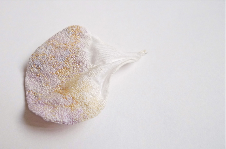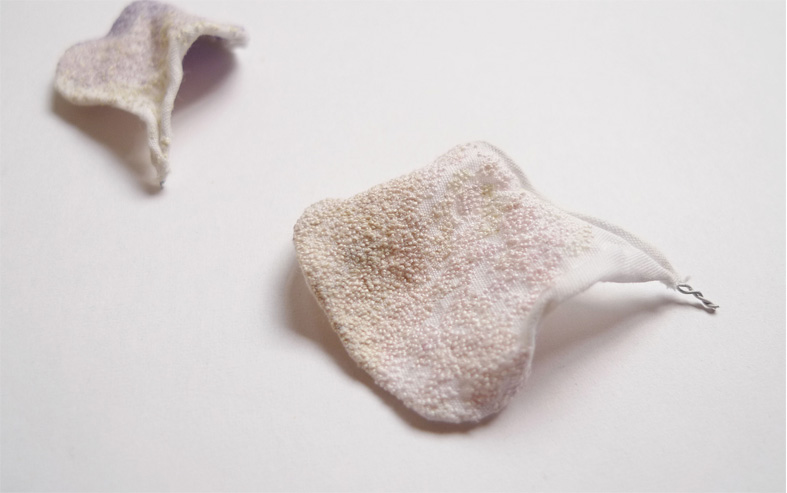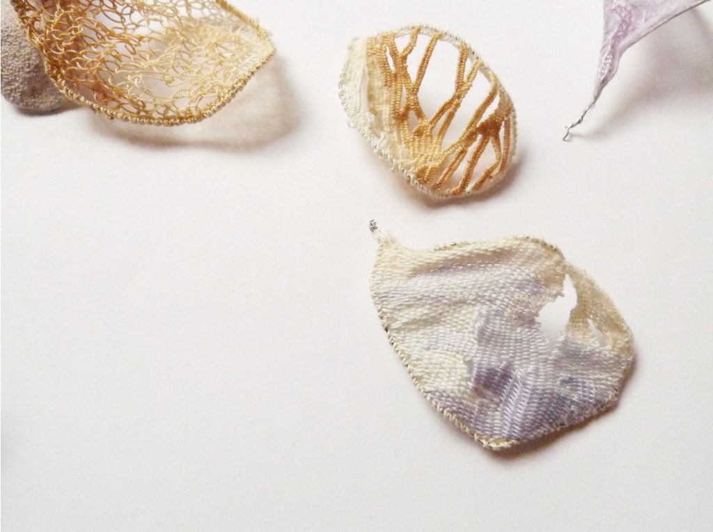 Matériaux : fils de lin teints et brodés sur toile de coton